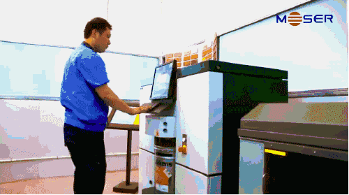 精良加工设备,压轮送料,四把精刨刀将木材刨光,呈现标准木方,并检查加工精度。