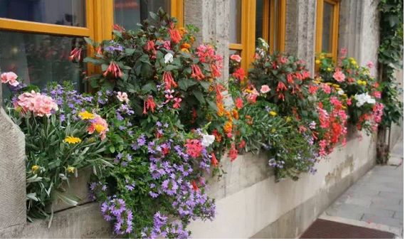 再看这一张照片,室外的窗台上也是装满了花盆和鲜花,难道德国人都不开窗户的吗?当然不!因为他们的窗户平常根本就不会向内或向外完全平开!最多是内倒通通风,而窗户内倒时候根本就不影响这些绿植!