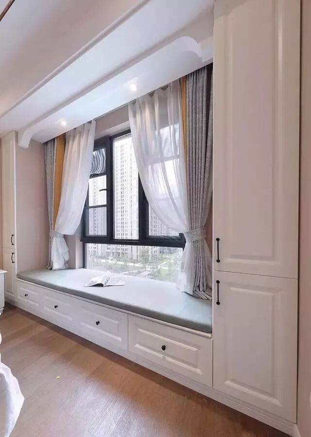 家里空间小,如果能多出一个飘窗空间的话,卧室就能变得更美观和实用,小飘窗加上坐垫、窗帘就可以用来收纳,谁会有理由拒绝它呢?
