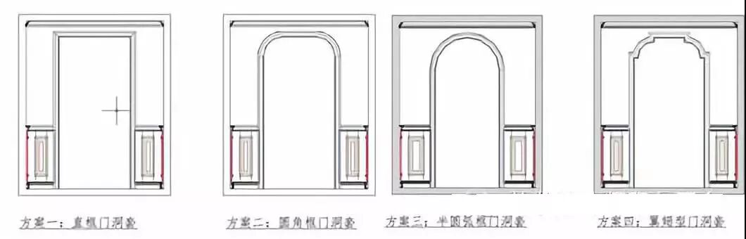 上属四种门洞套与墙裙搭配时请加厚度,厚度要求单边大于腰线最厚尺寸20至30毫米,套板应将墙板厚度加在内。与墙板相接处加厚重叠部份现场开口。