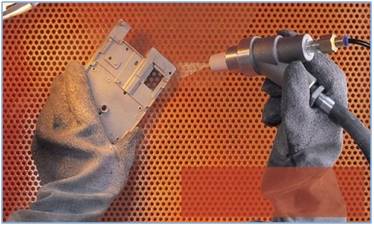 (2)保护(也称蔽覆),工件上若某些部位不要求有涂层,在预热前可采用保护胶等掩盖起来,以避免喷上涂料。