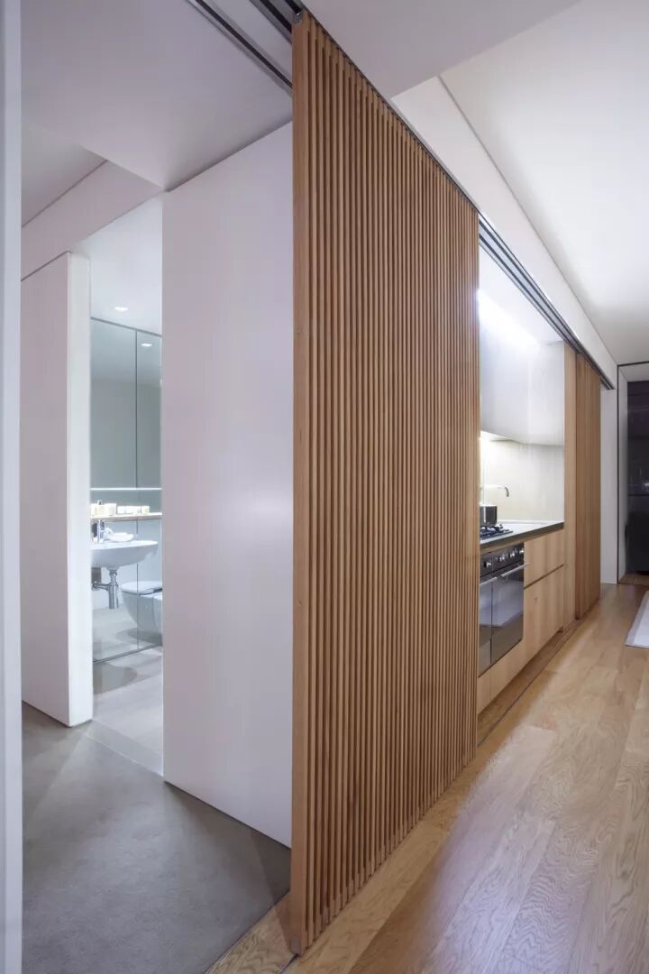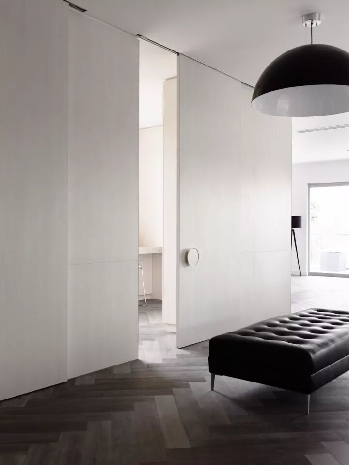 入墙式推拉门在欧洲的室内设计中经常出现,它的隐藏性质能让自身完美融合于墙体达到极简的效果,同时,在安装门的墙体两边可随意摆放家具且不影响过道的使用。