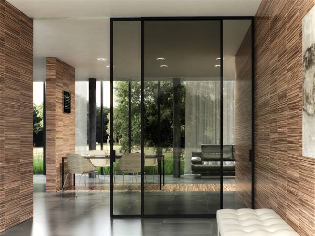 定制的大型推拉门能在隔离的同时营造很好的装饰效果,相比较其它推拉门,这种推拉门在体型上更像是会移动的隔离墙,而且能选用多种材质让室内设计更加多变。