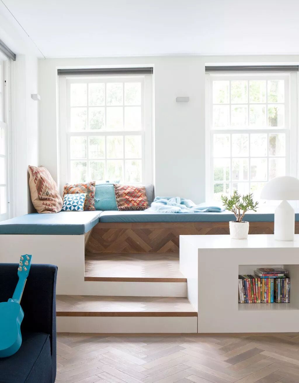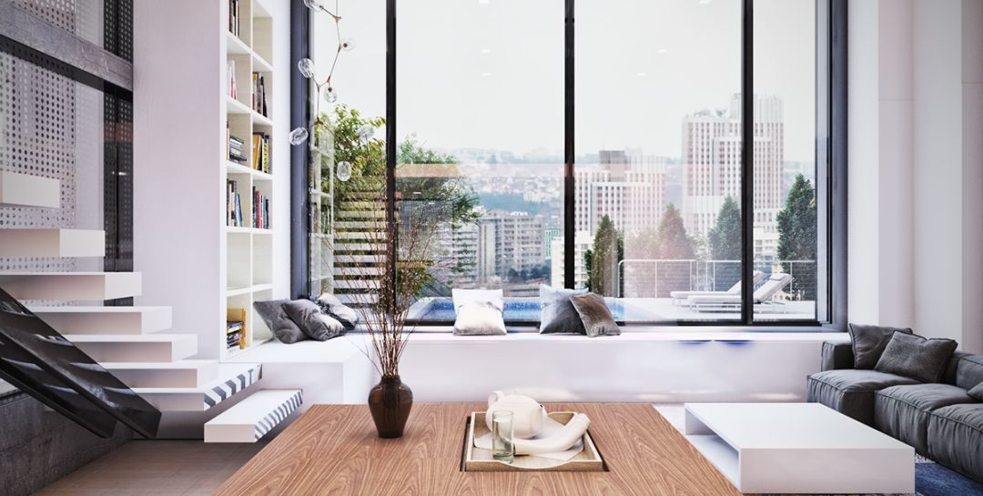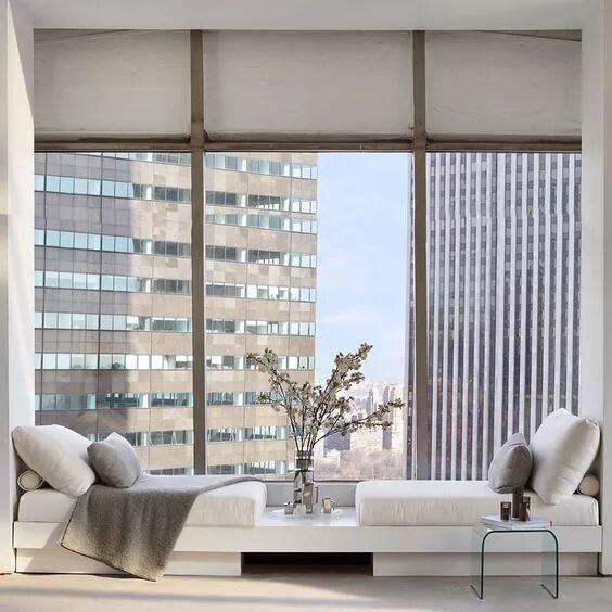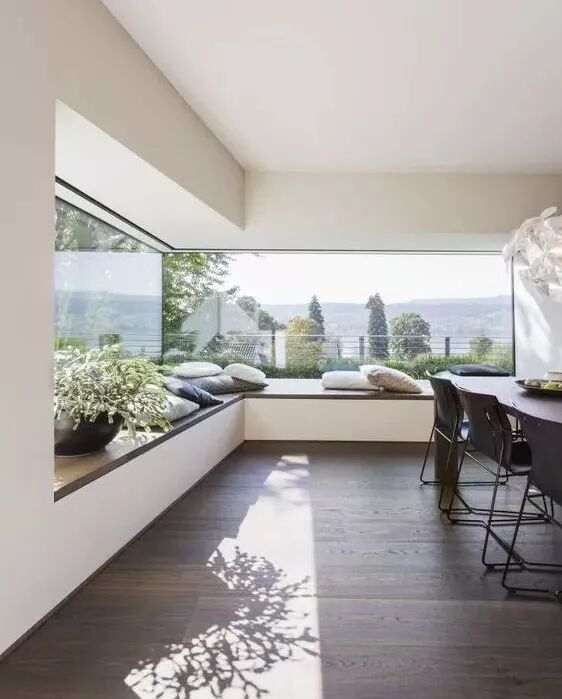 其实只要对飘窗的四周用木板稍微改造下,就演变成唯美的观景区域,超广角的视野,并能延揽大面采光,坐在此处,随着时间的流转感受光影变化。