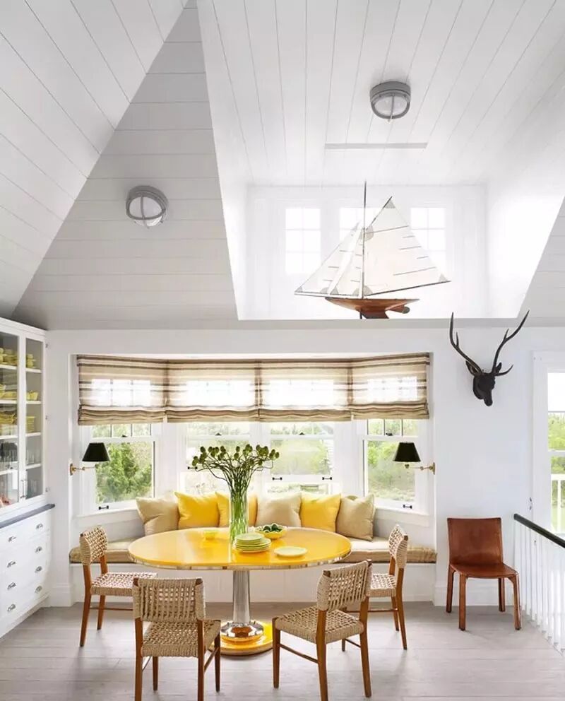 极具情调的雅座,不仅在高雅的西餐厅可以享受到,家里也可以实现。在靠近窗户的位置,不妨挪出2㎡左右的面积,搭建出舒适、休闲的飘窗卡座,营造一种优雅气息。
