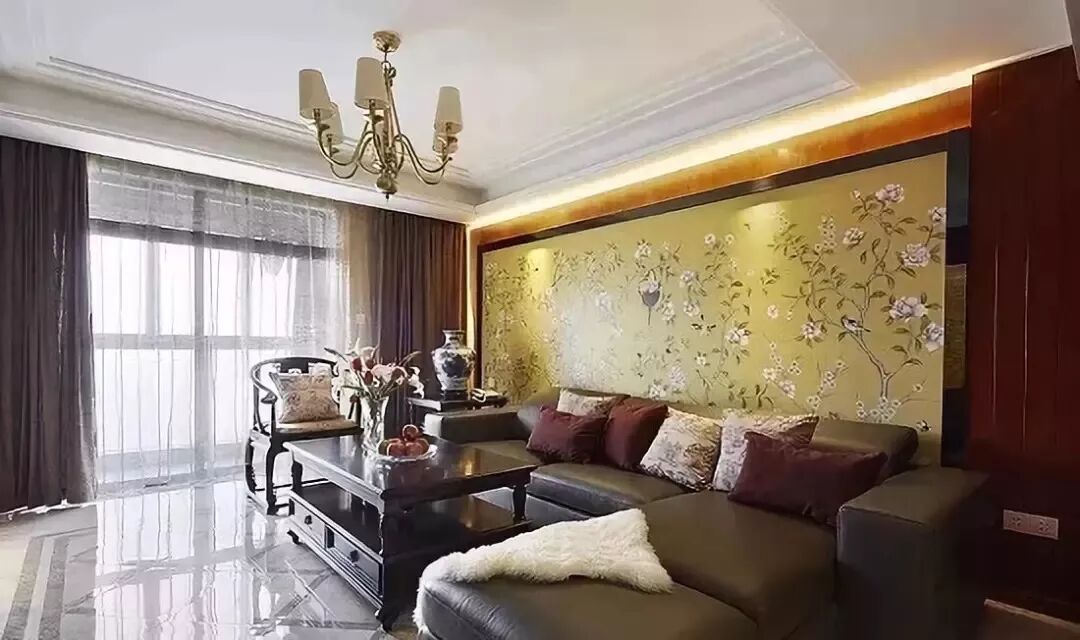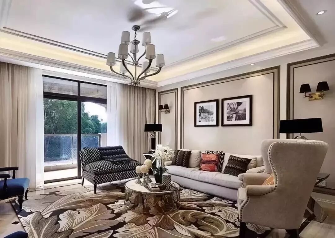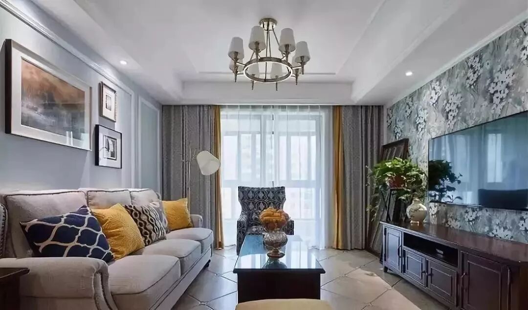 美式风格的客厅窗帘,可以选择像图13这样带有花纹的窗帘,效果很是优雅大气。