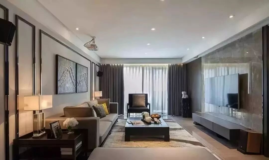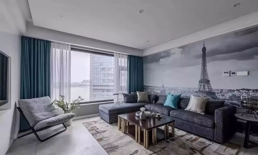 现代简约风格的客厅窗帘,通常都是纯色的为主,搭配一层纱帘,效果就相当不错。