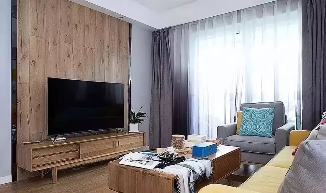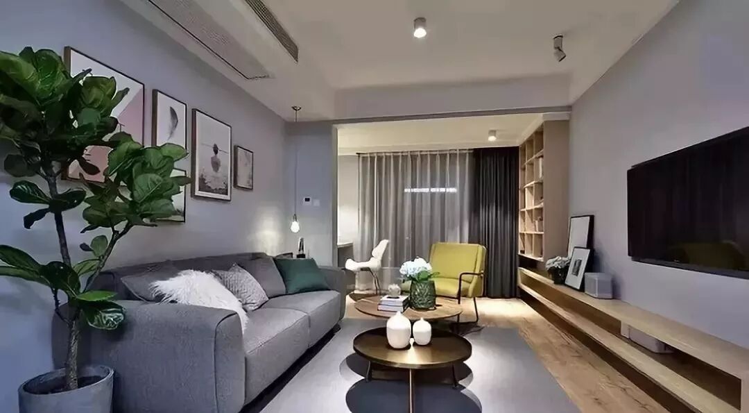 宜家风格的客厅,通常是搭配灰色、米黄、米白的窗帘,显得很现代很年轻的视觉。