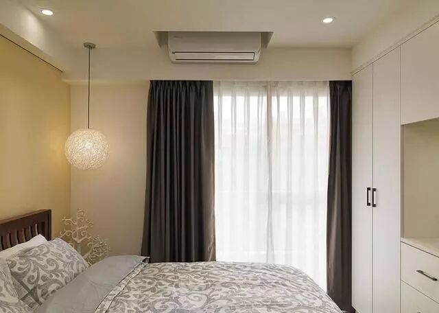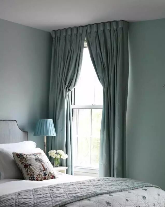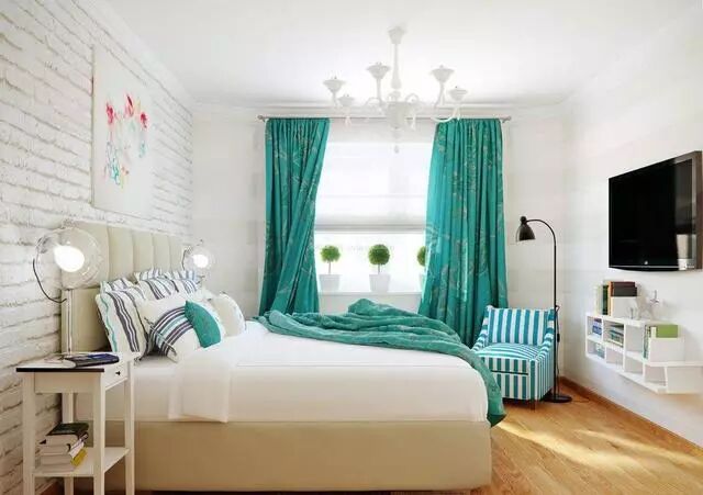 绿色的窗帘,是整个卧室的点睛之笔,如果挂满整面墙,就会显得特别的俗气,不如两边留白,只遮挡窗户,恰到好处。