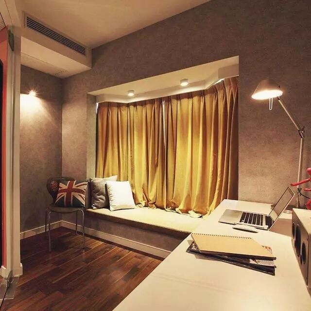 飘窗尤其不能用大窗帘,会在视觉上压缩室内空间,看上去不通透。