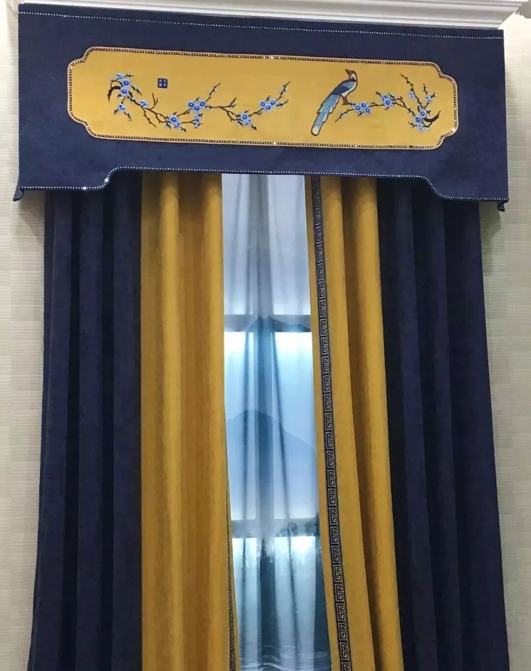 新中式风格窗帘多采用对称式的布局方式,格调优雅大气、造型简朴优美,色彩浓重而成熟,呈现亦古亦今的空间氛围。