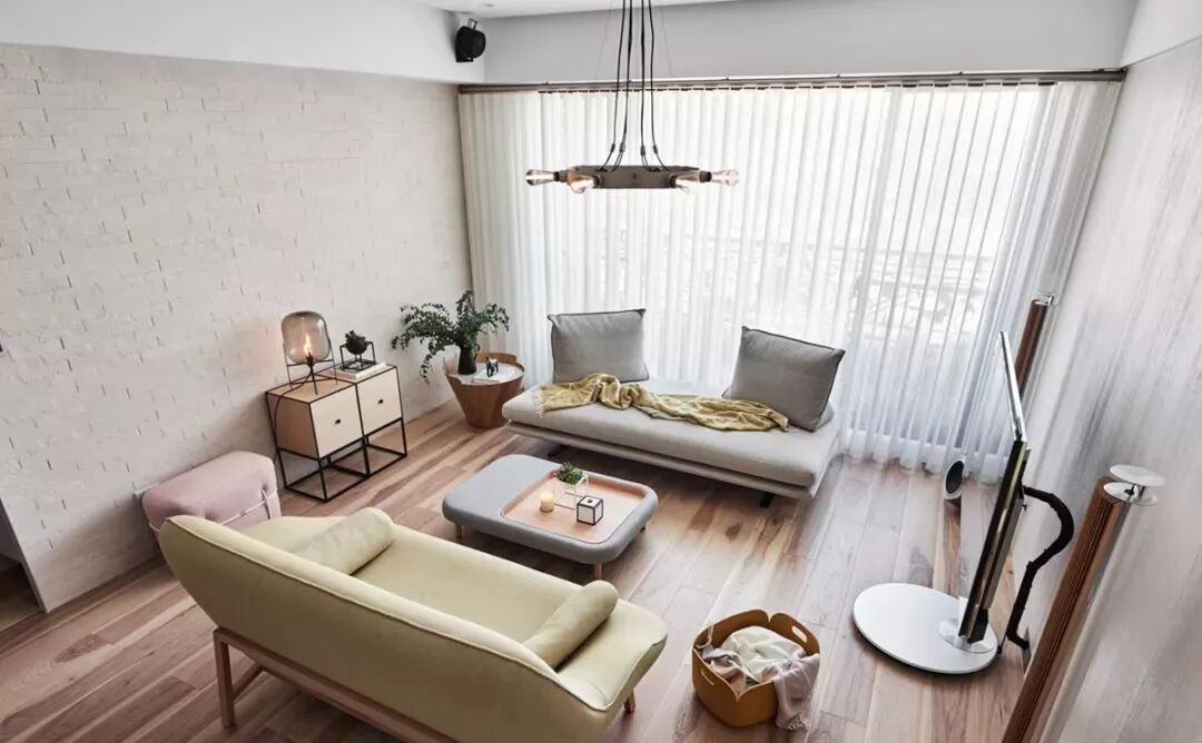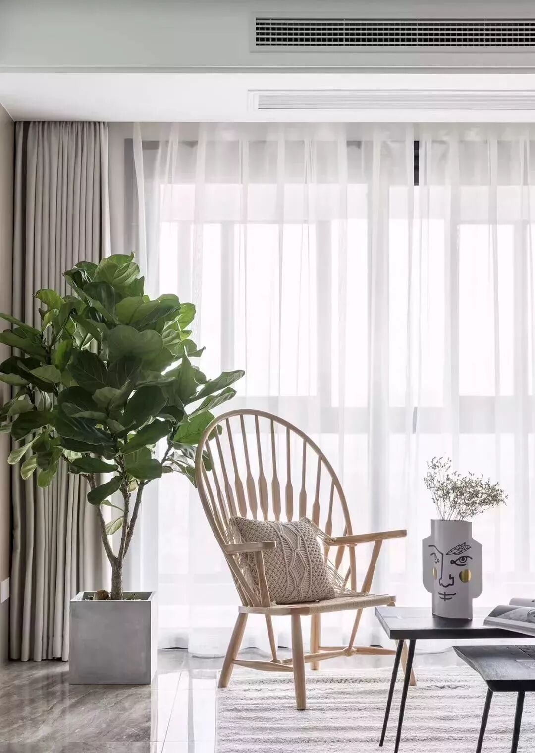 3. 同一个窗户的布帘与纱帘,纱帘尽量比布帘短一些。墙不直、厂家制作误差,都可能导致内侧纱帘长于布帘,影响美观。