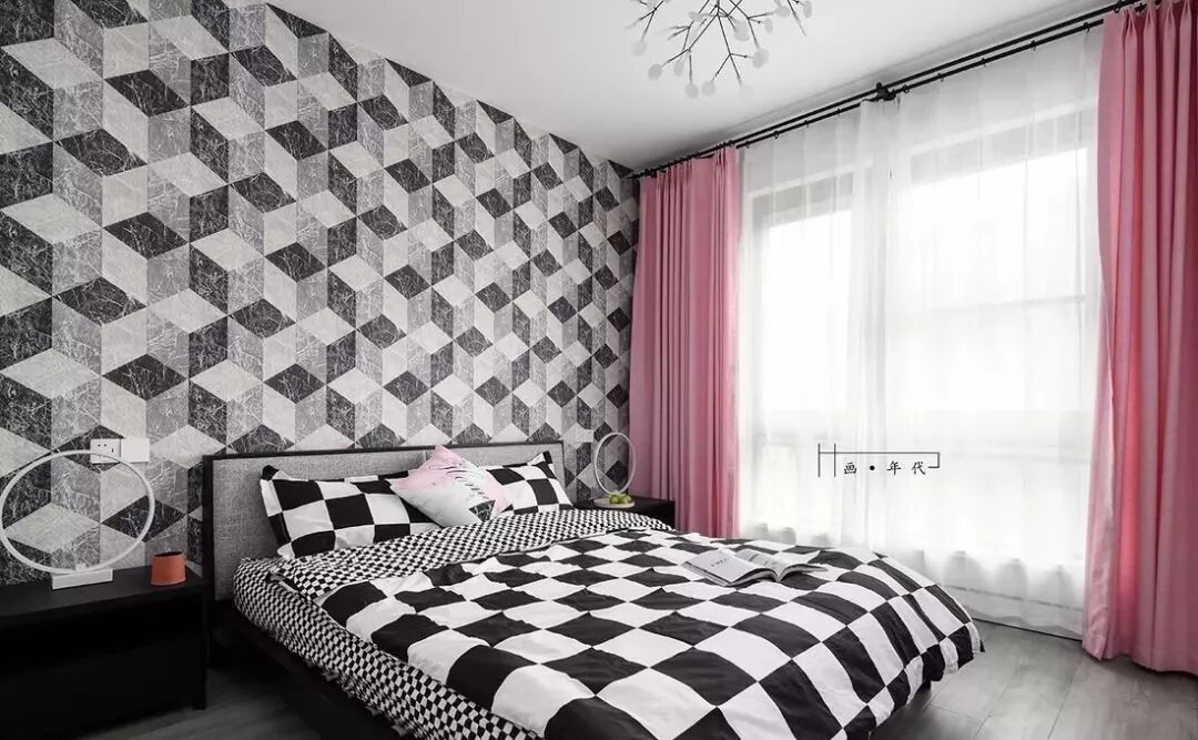 卧室的窗帘更注重功能性,要充分避光以保证睡眠。卧室内窗帘最好选择落地款,以免窗帘过短而漏光。