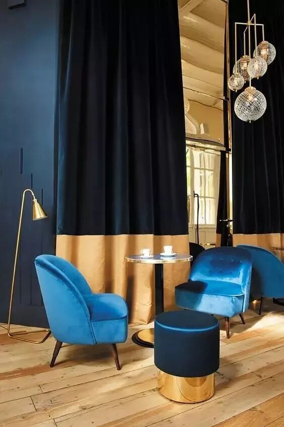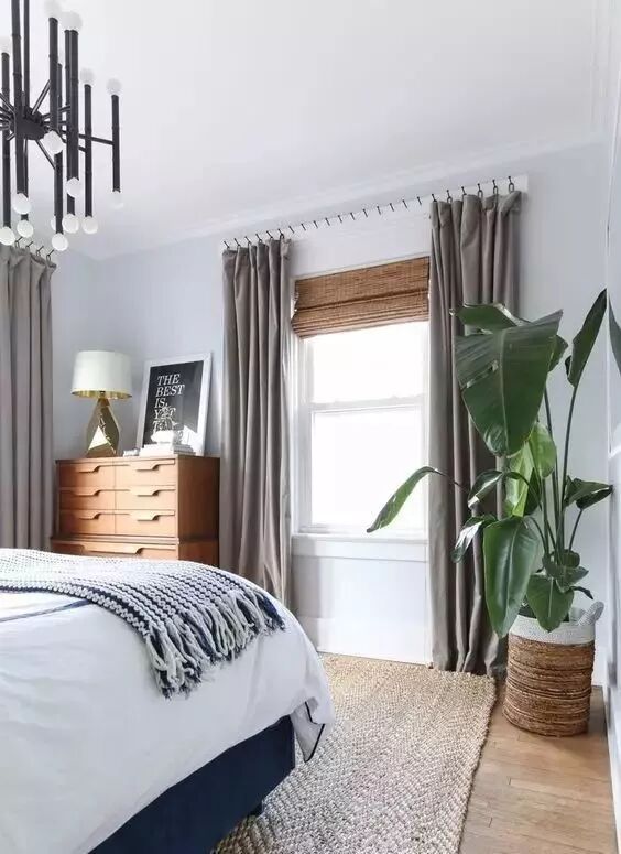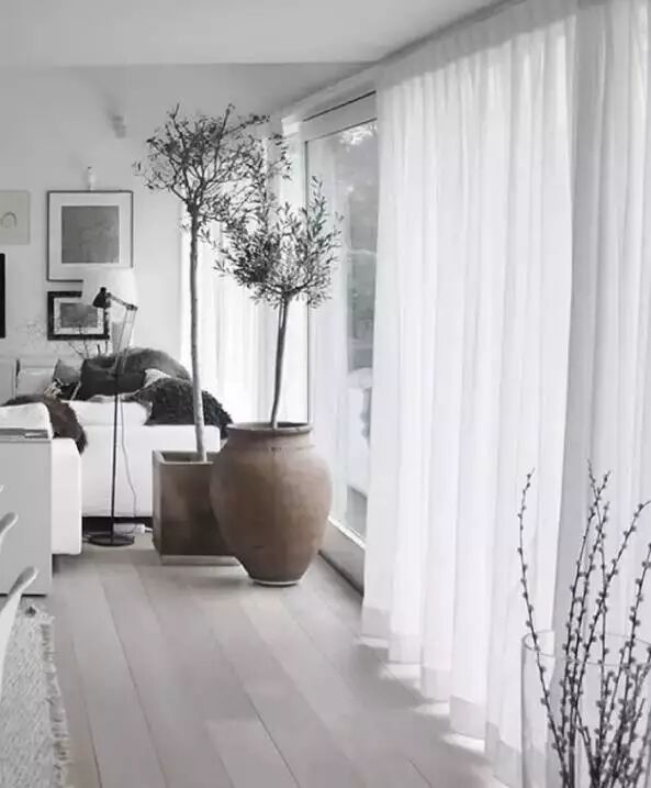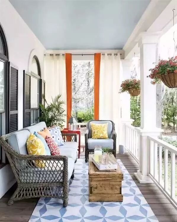 在颜色选择方面,客厅选择暖色调图案的窗帘