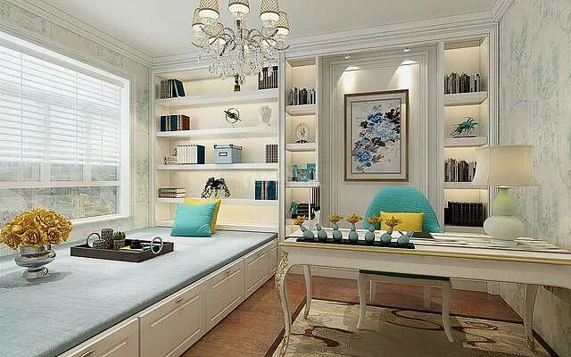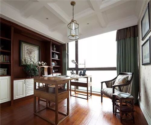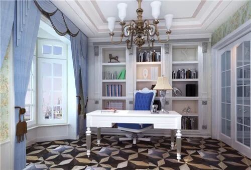 比方说欧式风格书房,最好选用欧式风的窗帘进行搭配,这样能保证书房和谐的环境氛围,也不会破坏书房风水,使家庭运作更为顺利。