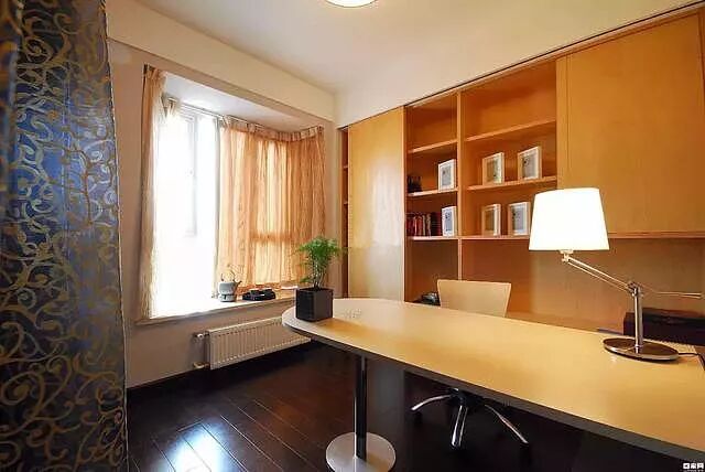对于这个居室的帘子,最好选用既能避光又有一定通透感的淡色帘,比如说白色、米色等,当然高级温和的白色百叶窗效果更佳,这样即使日照再猛烈,通过窗幔折射会变得温暖畅快,改善书房的风水运势,同时在窗帘旁挂上“文昌锦囊”以催旺事业学业。