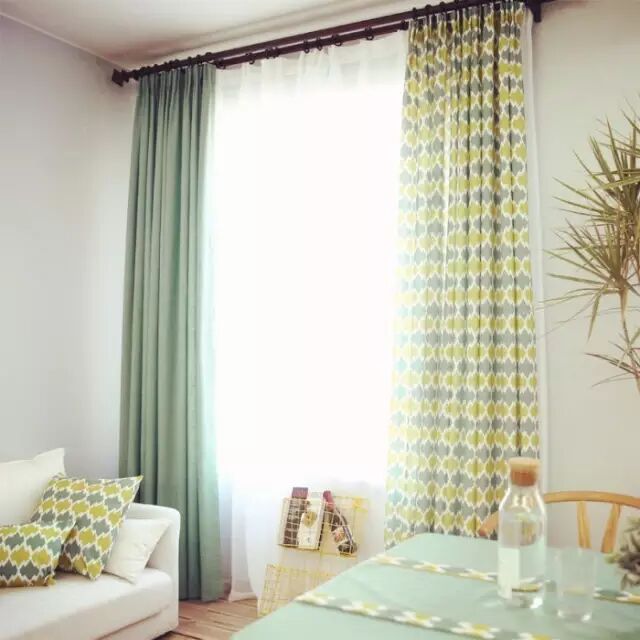还有一种是小碎花图案的,最好选择和纯色窗帘搭配,差不多的颜色能够掩盖掉碎花的突兀。