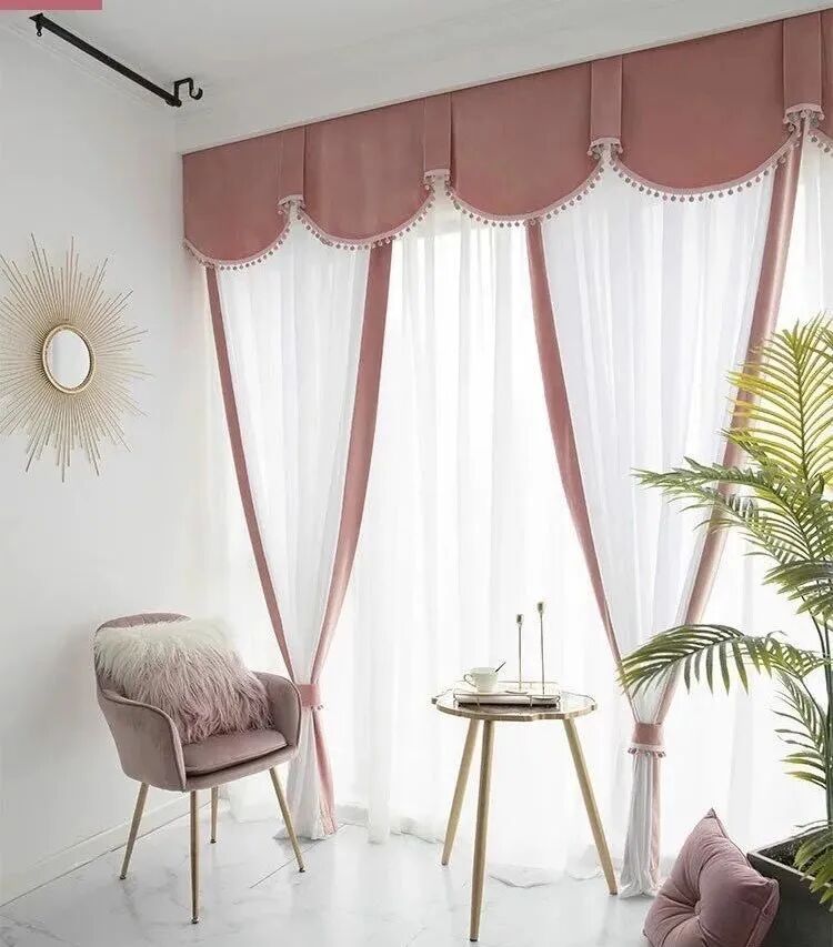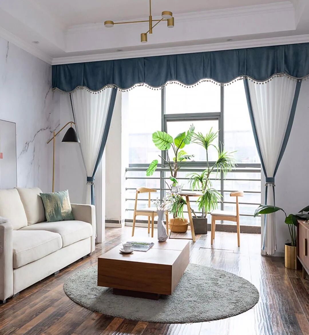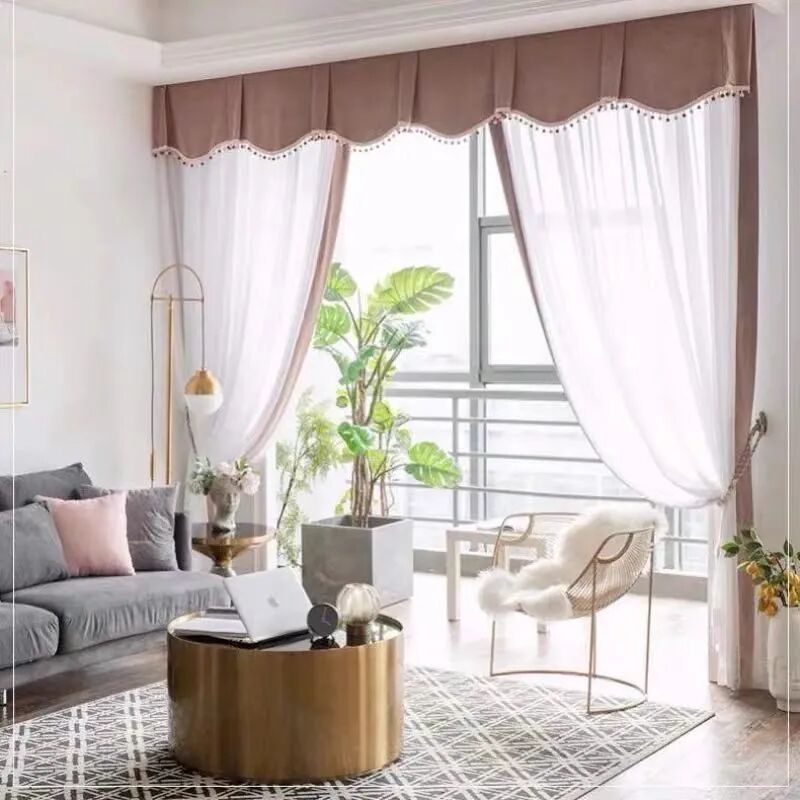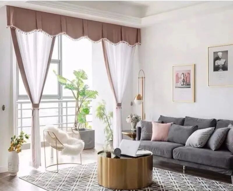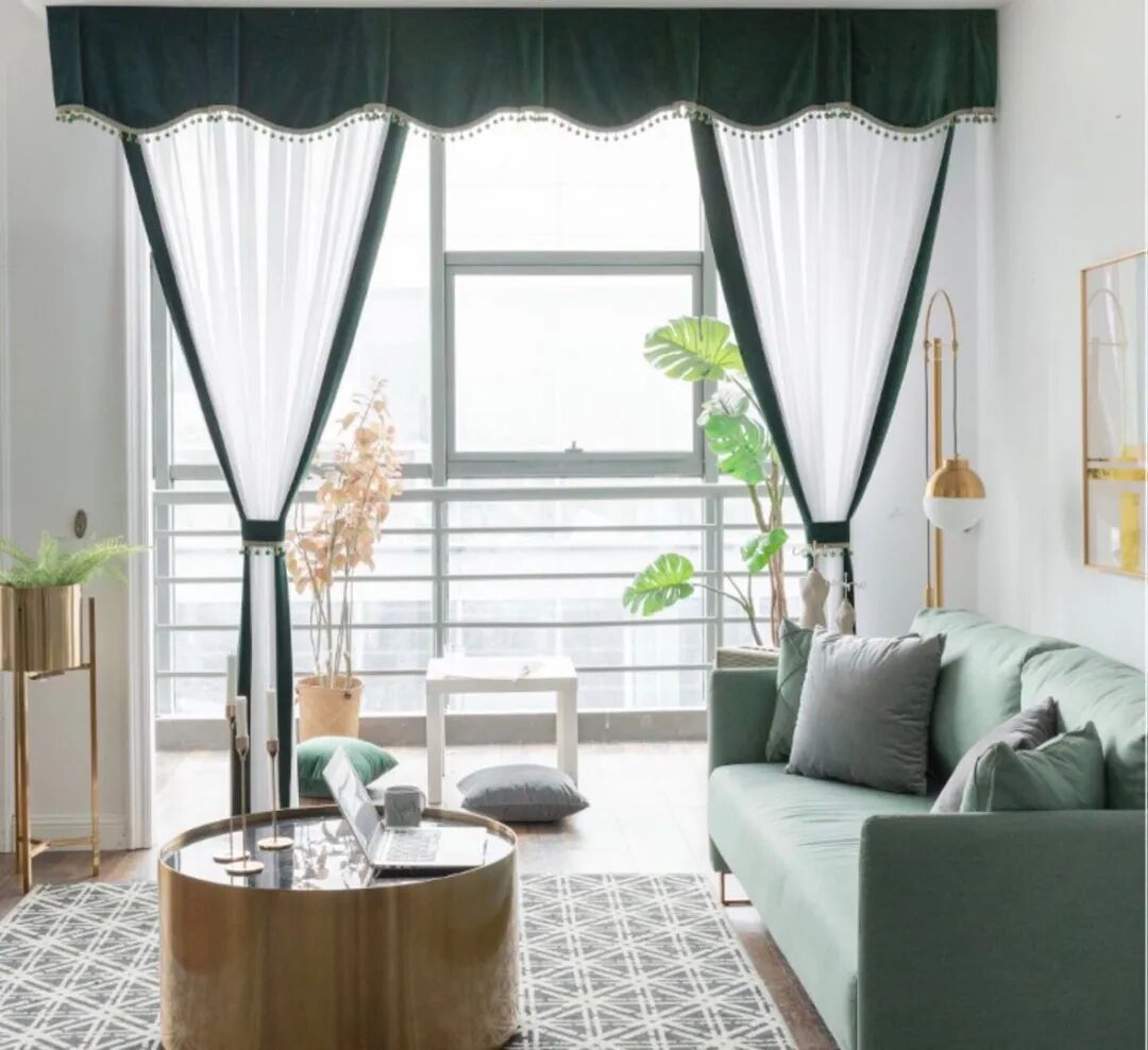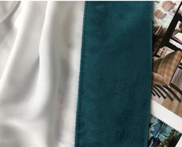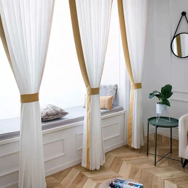 白纱具有很好的柔光效果,既能保证屋内隐私,又不影响采光。侧边拼接绒布或者高精密面料增加了窗帘整体的大气感。如果再搭配一个简约波浪帘头增加了窗帘的整体美观度。本期给大家分享一组白纱纱帘镶边布料或花边案例。
