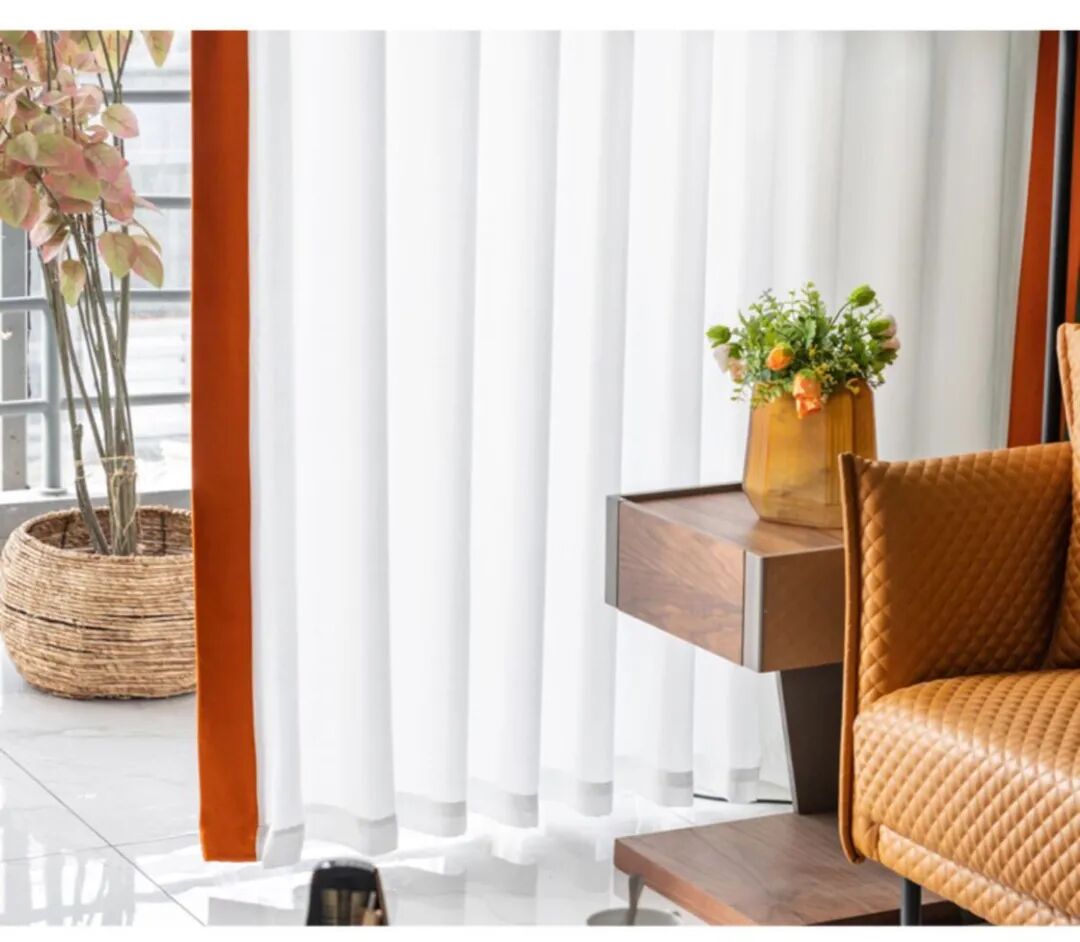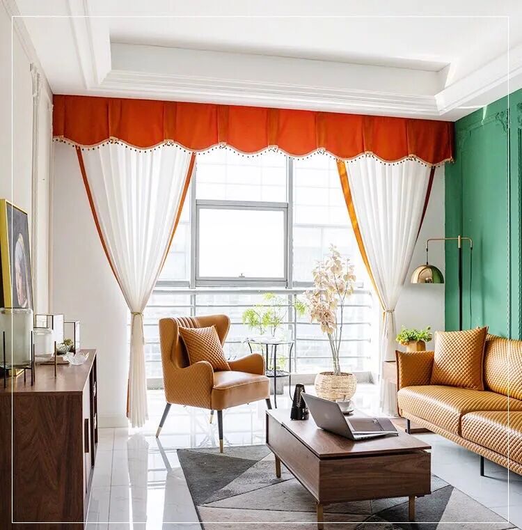 橙色具有奢侈品般的华丽,橙色搭配白纱纱帘,色彩明亮华丽,给人印象深刻,高贵无需低调,为家居带来不一样的热情与活力。