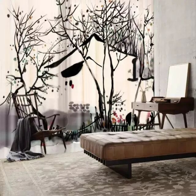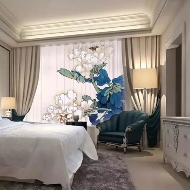 水墨画、牡丹、中国红这些中国风的元素适合热爱古风或者传统艺术的人,根本把窗帘变成了一幅巨大的画~