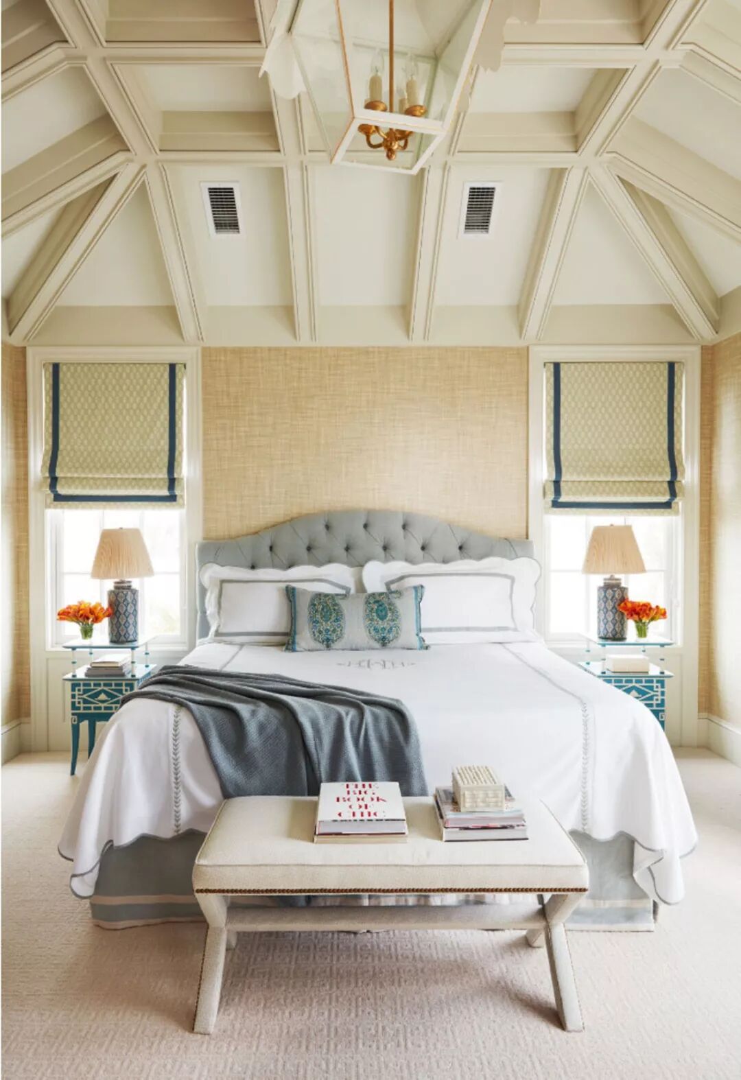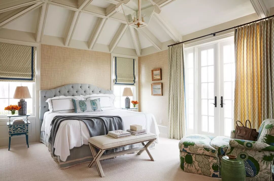 传统而古典派作风的卧室设计一定不会少了床幔加持。窗幔和床幔是最能展现整屋色彩构成的布艺装饰了。这两者都处于绝对的视觉中心,所以具有鲜亮明艳属性的跳色系列成为搭配它们的最佳选择。