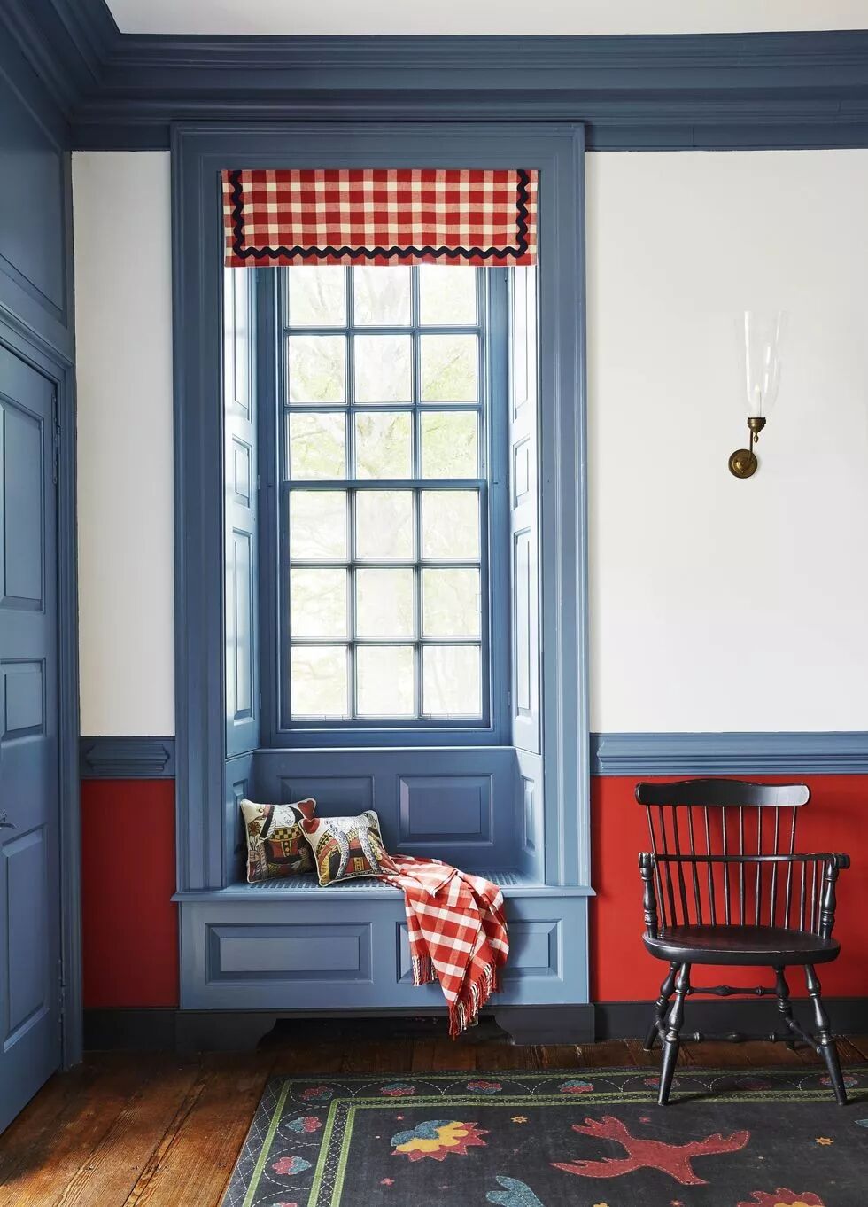 蓝色系是色彩搭配中最常见到的组合典型。如果喜欢被蓝色包裹的感觉,你不妨尝试这种由大面积的蓝色加持再以小部分亮色点缀的形式。配套的窗帘可以是跳跃性的、让人心动的英伦古典红,也可以搭配雪白的、纤尘不染的棉麻质地,同样地,具有绅士味道的高级灰色系窗帘更加充满迷人魅力。