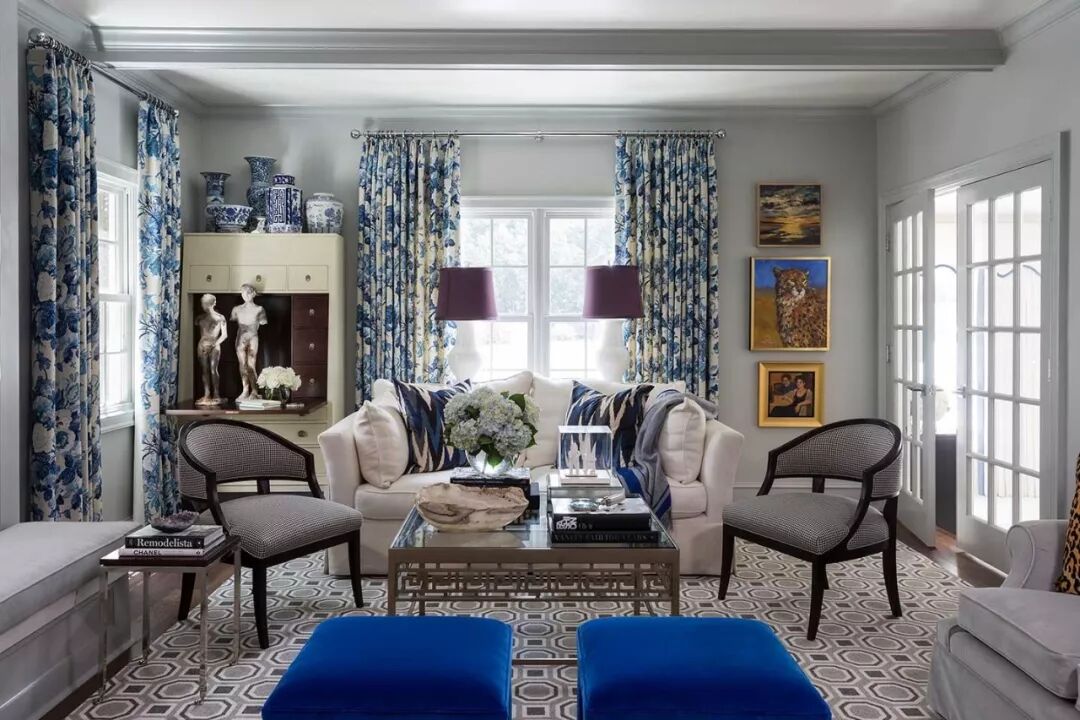 这是最具诗人气质和古典情怀的窗帘配色了吧!原本附着在瓷器上的精美绝伦的花纹,摇身一变,成为帘幕上动人心弦的蓝白色彩。瓷器是触感冰凉且质地坚硬的,而窗帘连同蓝白花纹本身则生出柔软温暖的感觉。这无疑是青花的另一种充满生命力的延续。