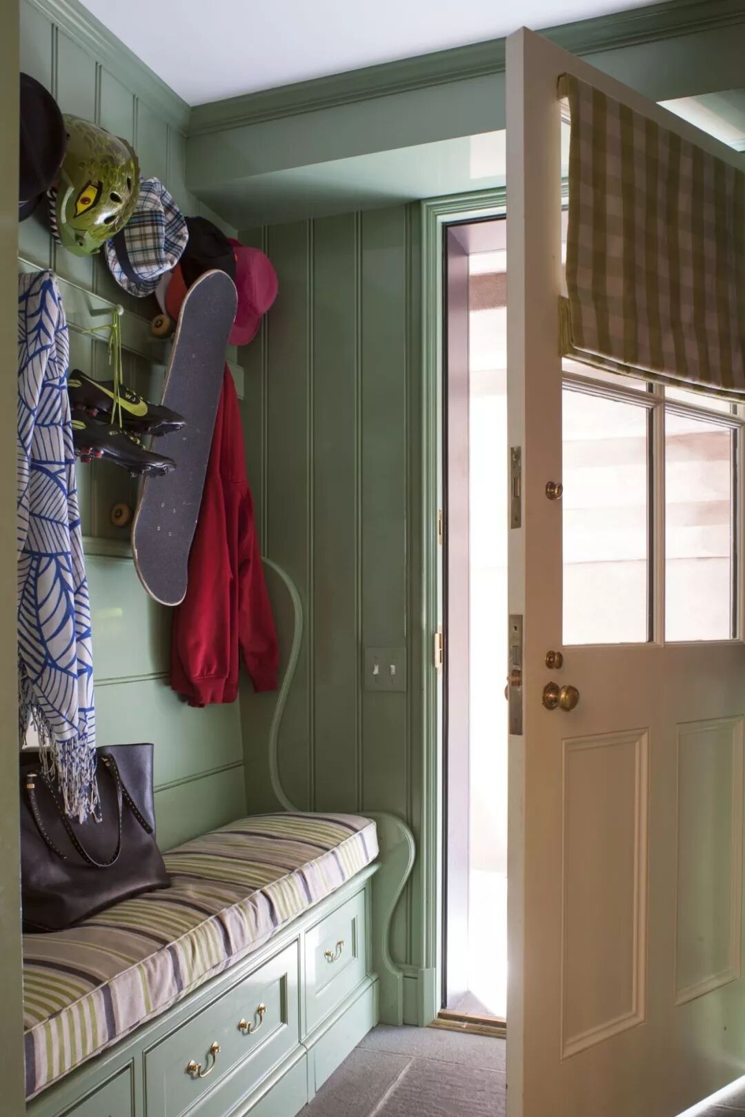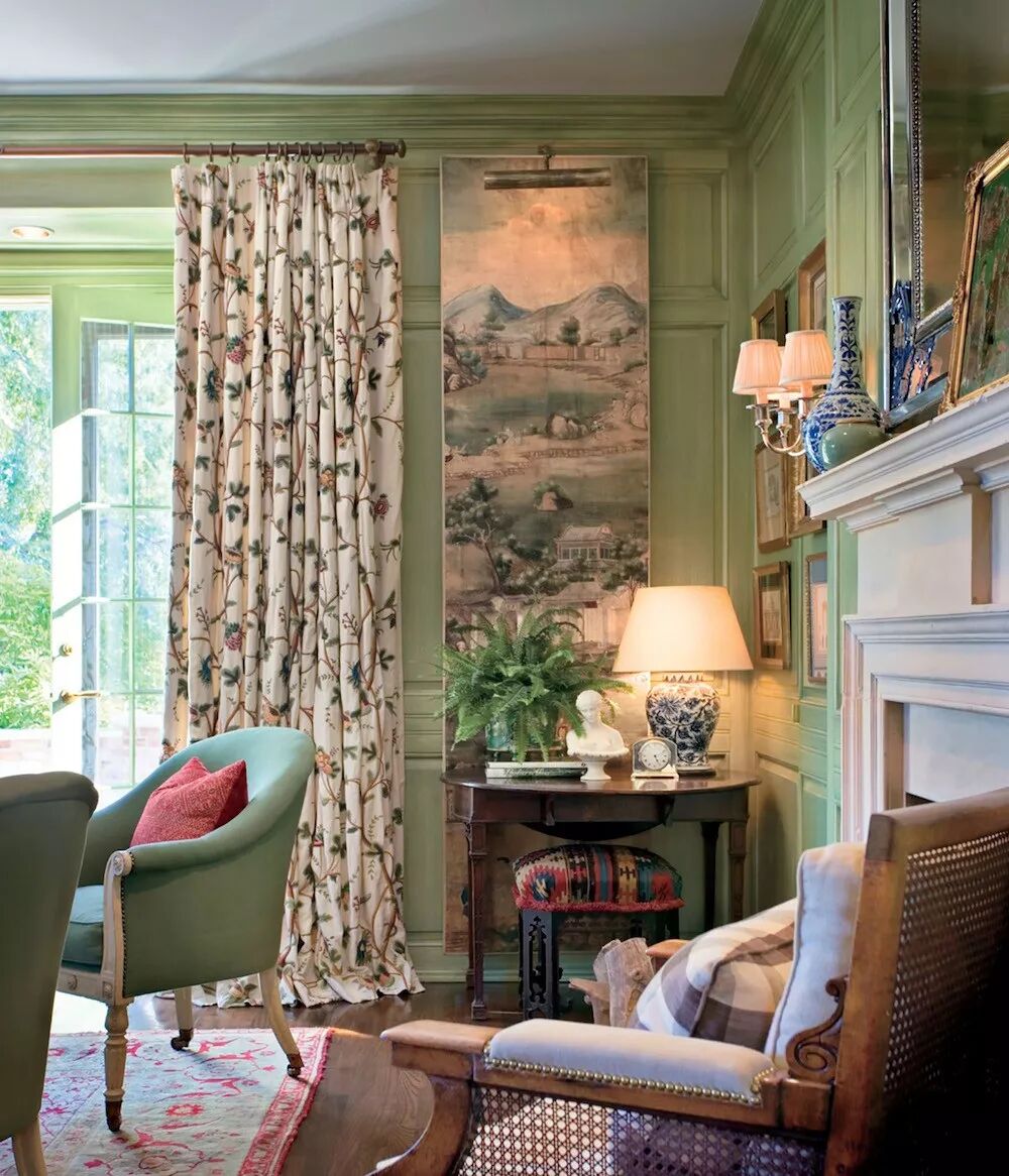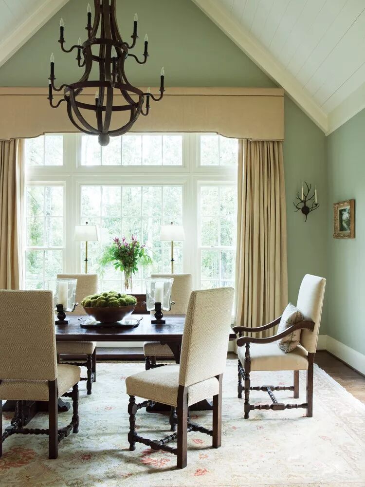 看完舒缓的蓝色系下面来感受下同样具备温柔魔力的灰绿色系搭配吧!与灰绿墙壁搭配的窗帘款式以及色彩推荐下列几种,比如:充满田园感受的米色碎花,拥有质感的硬括帘盒,文艺范十足的方形格纹等等。