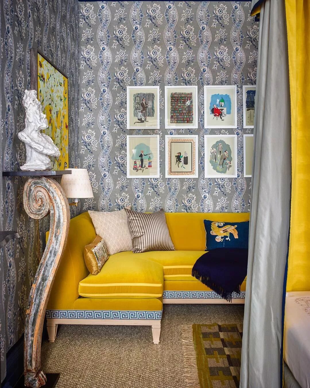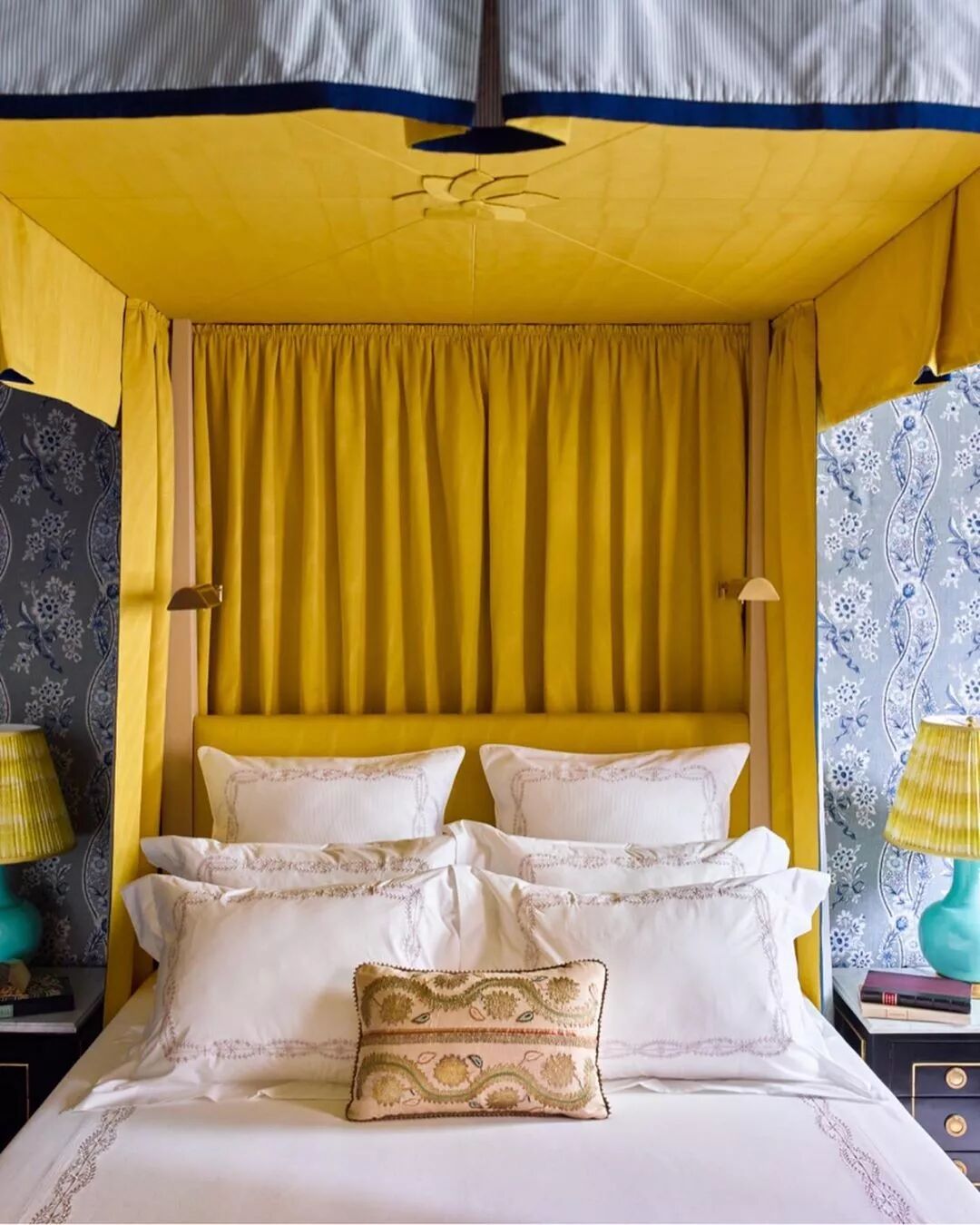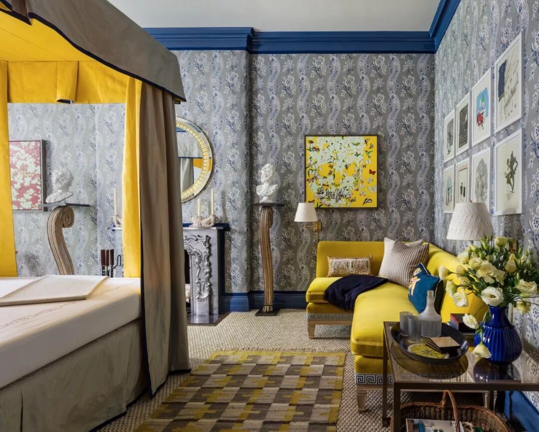 帝国黄,有种跃出屏幕的高贵之气,无疑释放了最佳的装饰特性。米克诺斯蓝点缀与帝国黄产生对比,冷暖组合,带来配色戏剧化的质感提升。