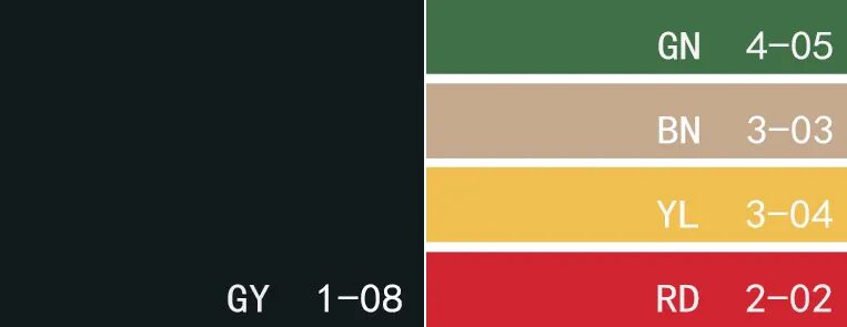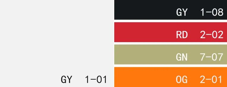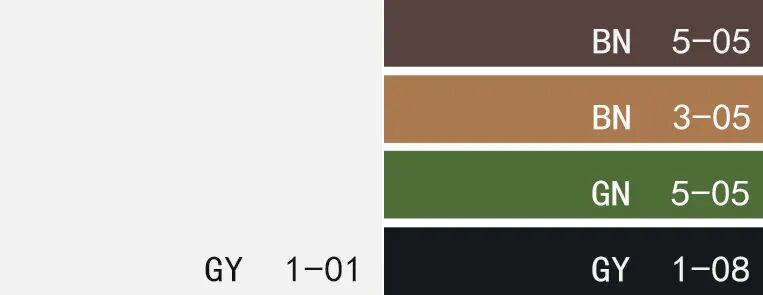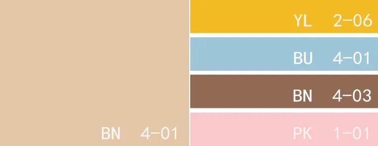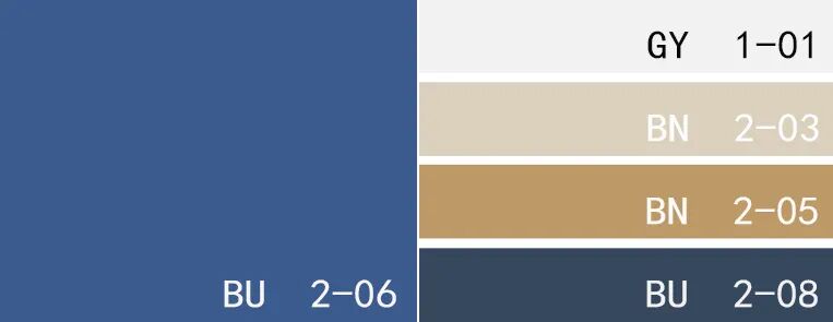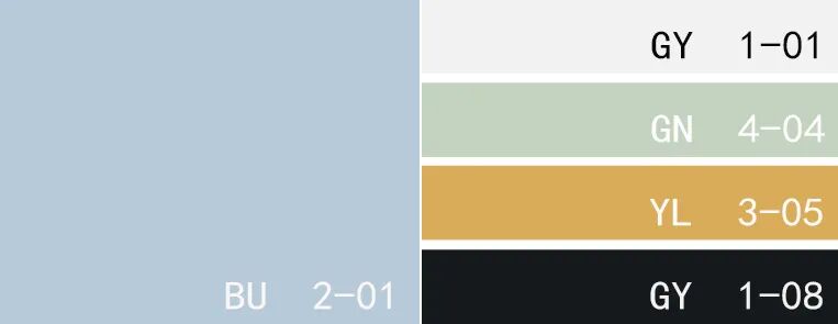 色卡:婴儿蓝、亮白色、浅灰绿色、赭黄色、纯黑色
