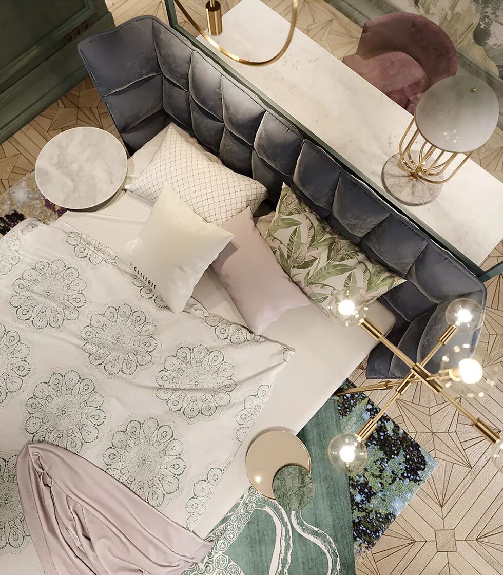 卧室铺陈选用柔软舒适的布艺质感