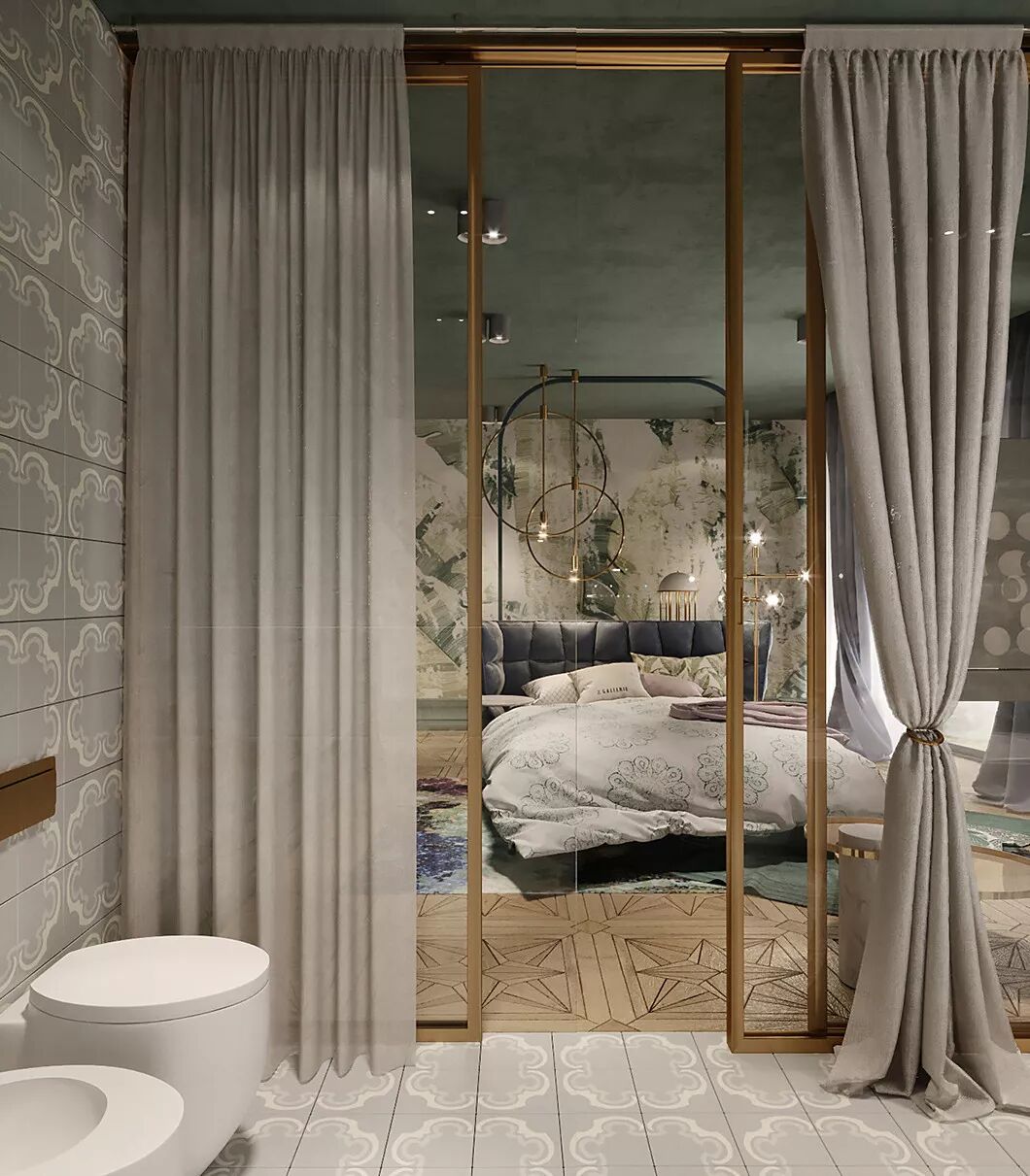 卧室以灰绿色为主