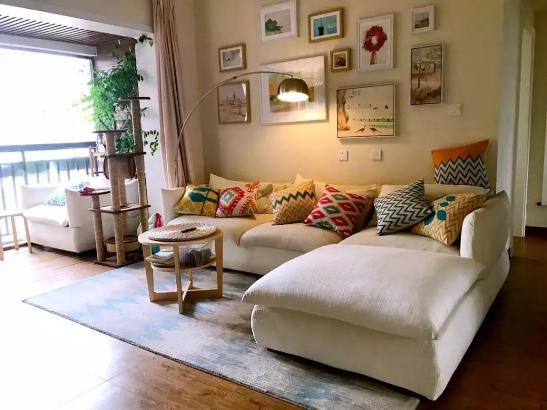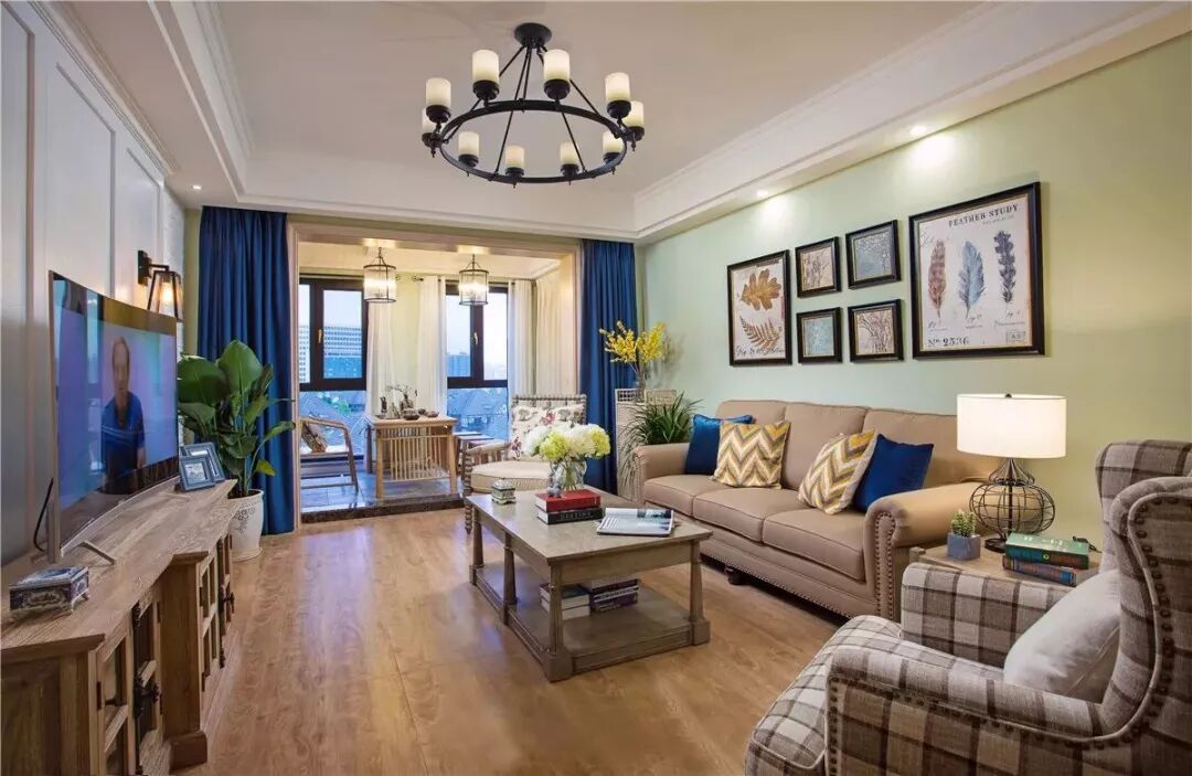 如果客厅原本面积就不大的话,那么就可以把窗帘挂在阳台的窗旁,这样既可以挡光,又能让客厅显得更加宽敞明亮。