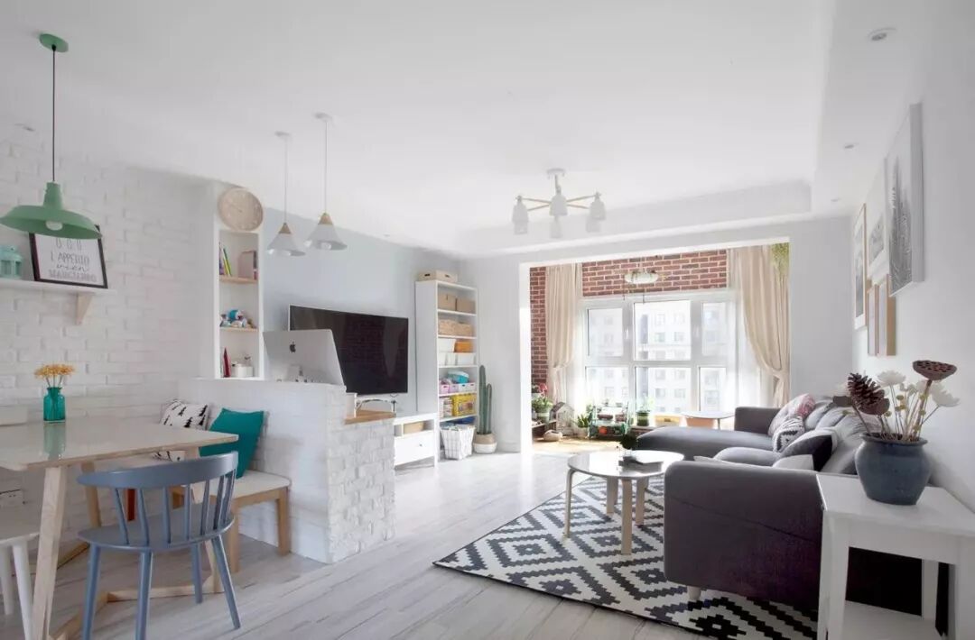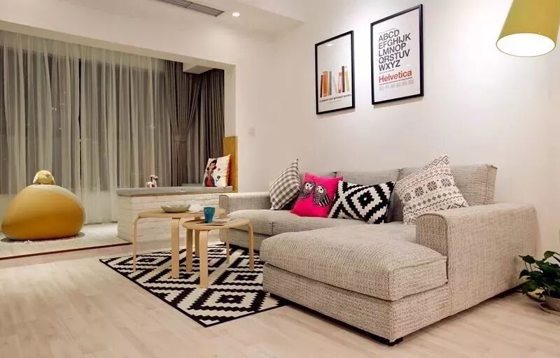 当然,你也可以在靠窗跟门垛位置都挂上窗帘,这样灵活控制的设计,整体设计更加有趣。