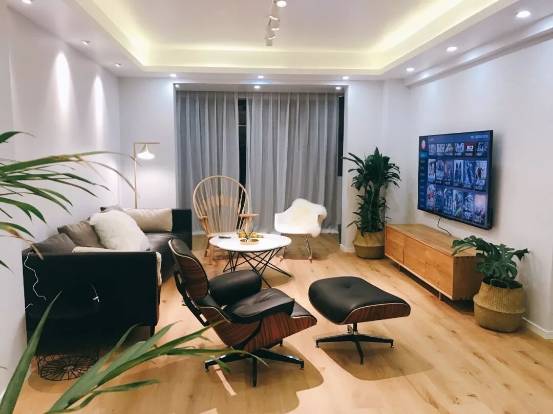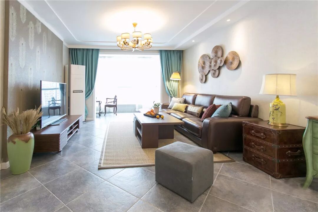 如果客厅原本面积就不大的话,那么就可以把窗帘挂在阳台的窗旁,这样既可以挡光,又能让客厅显得更加宽敞明亮。