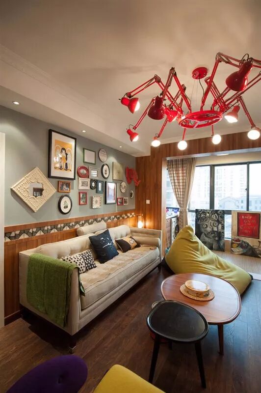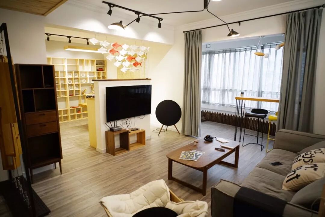 当然,你也可以在靠窗跟门垛位置都挂上窗帘,这样灵活控制的设计,整体设计更加有趣。