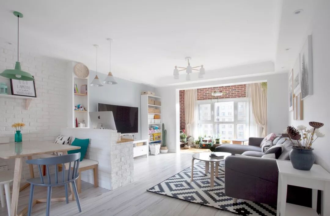 为了让客厅显得更加宽敞,不少人在装修的时候都会把阳台打通纳入到客厅里,而为了不破坏承重结构,通常是会保留阳台的门垛;这个时候,窗帘就可以挂在靠窗或者门垛旁了,而不同的挂法,出来的效果也是不一样的,今天我就来分享一些关于这方面的案例吧!