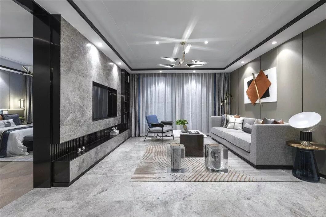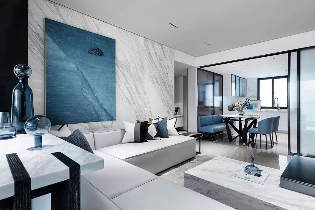 简约冷冽的大理石背景墙 与艺术气息浓厚的挂画 形成理性与人文的对话 其独特的审美营造出 与众不同的空间魅力