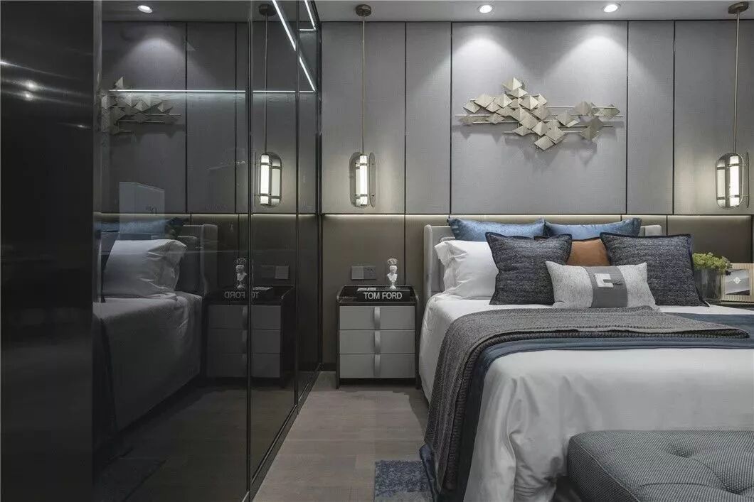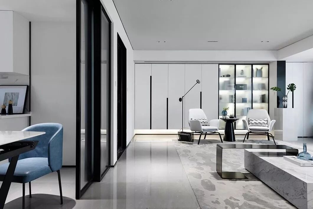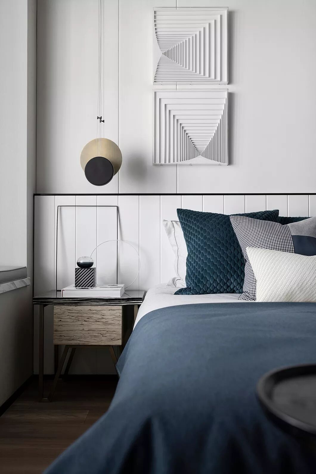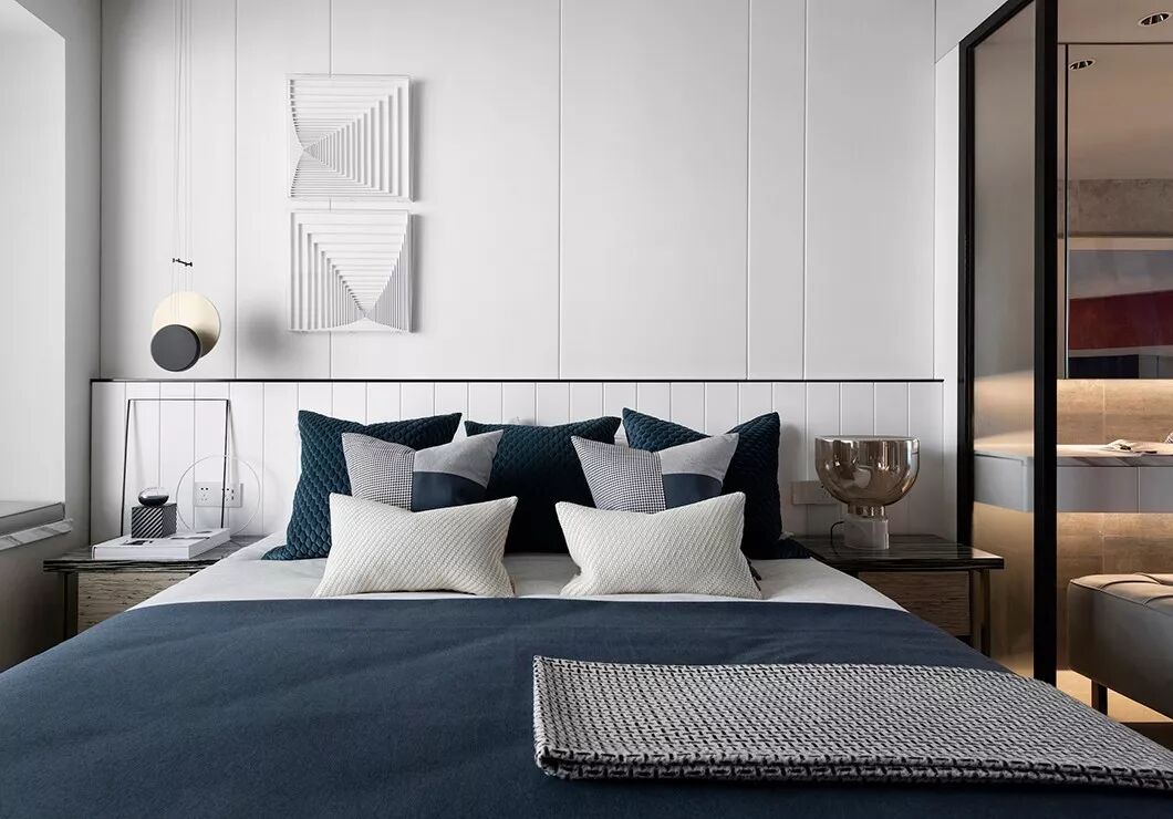 以简约的设计手法构筑纯粹的生活情境 沉稳的蓝色作为主色调引导空间情绪 “线”与“形”的元素贯穿整个场域 静谧与质感的格调氤氲而生
