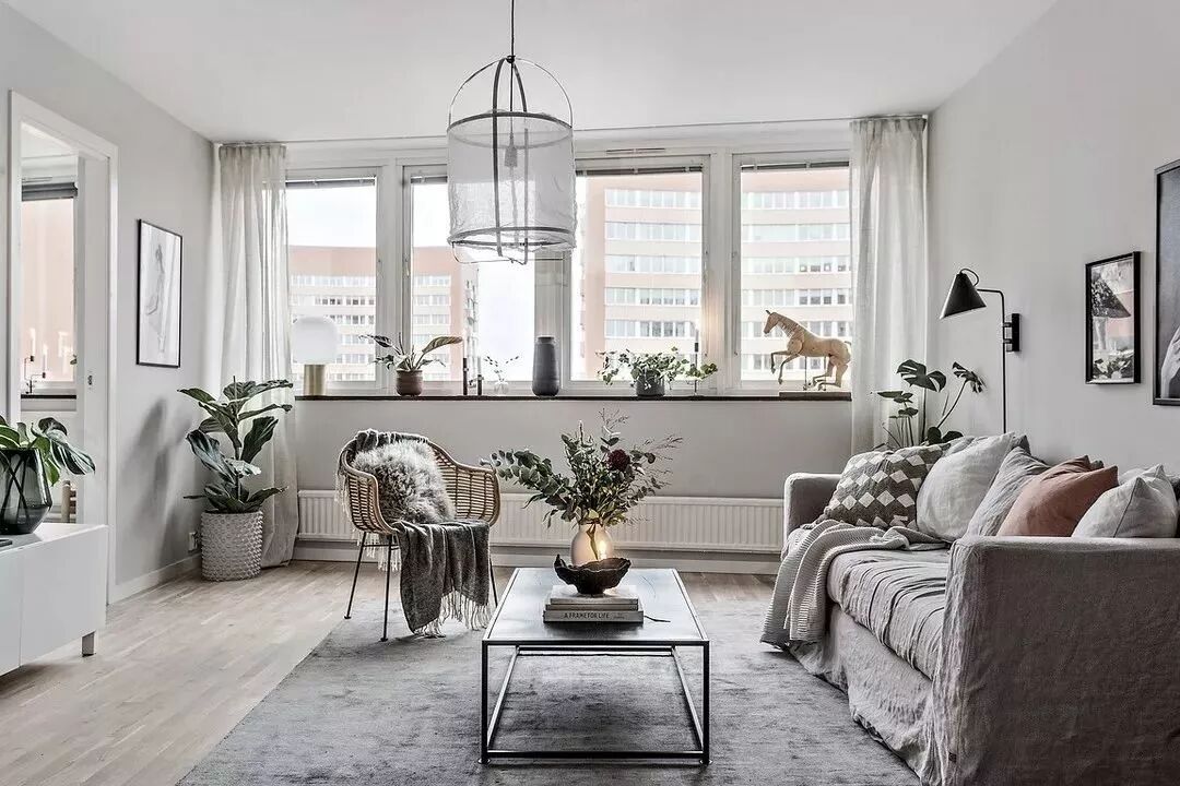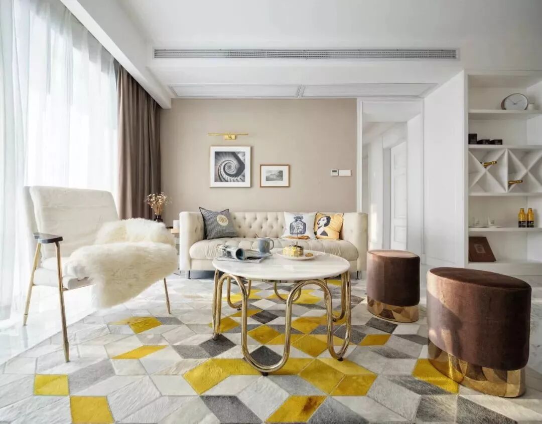 如果因为阳台的遮挡,想让客厅的光线更加明亮充足,则可以选择浅色调或透光性强的薄布材料制作的窗帘,有镂空的布料也是不错的选择。
