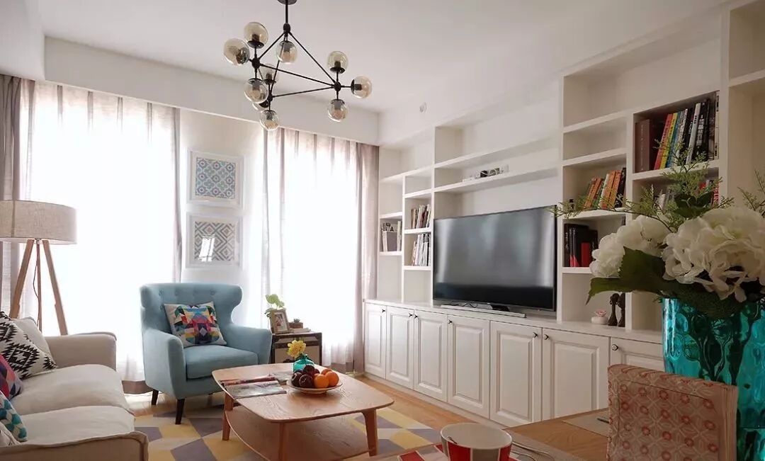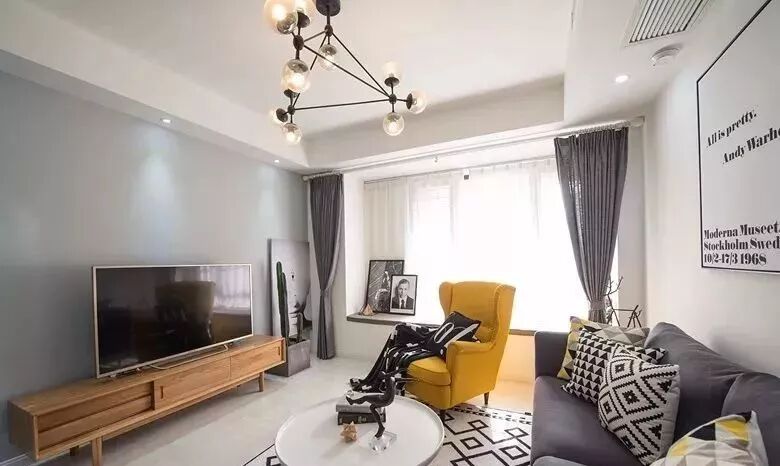 宜家风格的客厅,通常是搭配灰色、米黄、米白的窗帘,显得很现代很年轻。