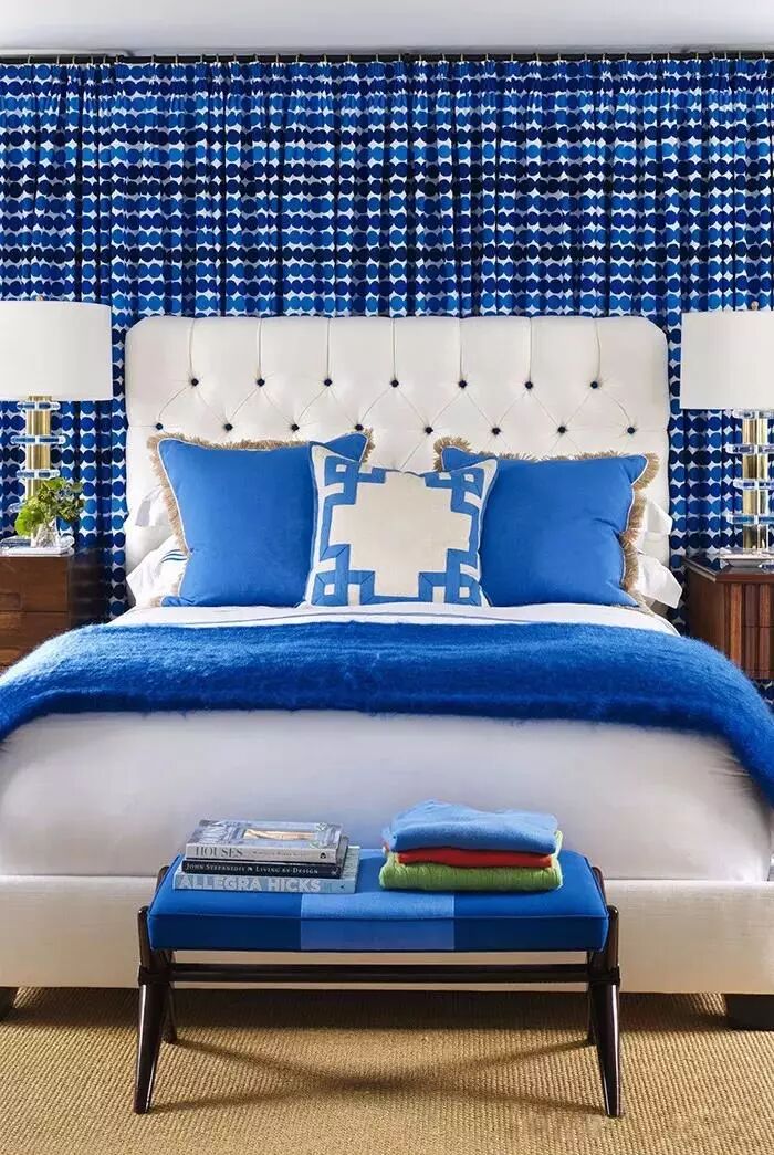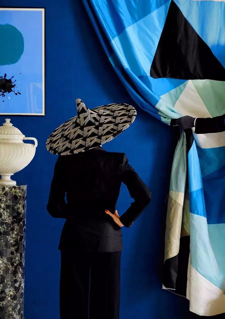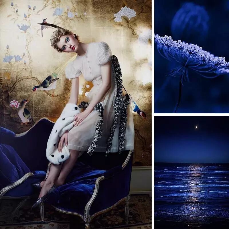 不同蓝调色彩间的渐变性对比令视感层次更为丰富饱满,引人注目。整体色彩配搭,蓝色的大面积集合创造出强劲的视觉张力。