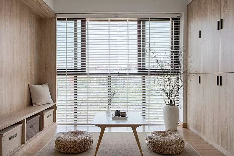 1.2百叶帘+布帘:百叶帘遮光性差,用在卧室,加一层布帘保证遮光性