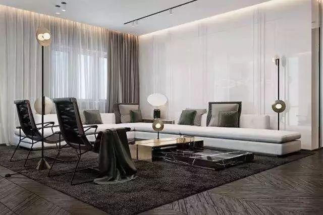 黑白的配色最简单也最经典,整个空间优雅而知性,黑色的大量运用在于平衡空间的色调。