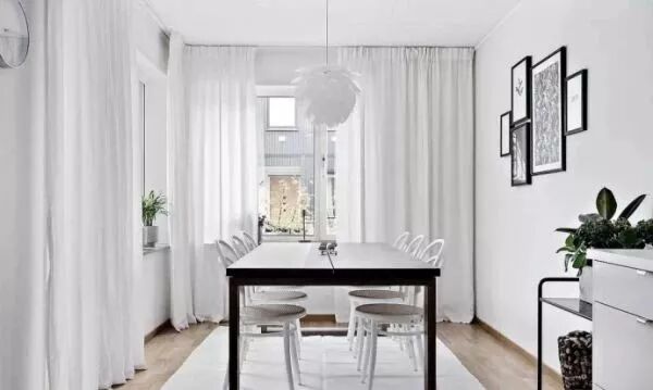 首先,应当考虑居室的整体效果。就一般而言,薄型织物如薄棉布、尼龙绸、薄罗纱、网眼布等制作的窗帘,不仅能透过一定程度的自然光线,同时又可使人在白天的室内有