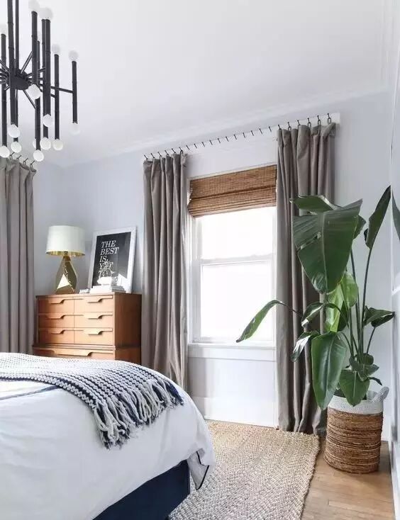 窗帘遮光的问题说简单很简单,说难也有点儿难。卧室光线不能太亮不能太暗,也不能全靠灯光支撑。平时阳光太刺眼的卧室除了选个遮光度较强的窗帘以外,还可以加做个半透明纱帘,既透光又挡光,起到缓冲作用。
