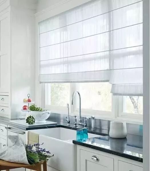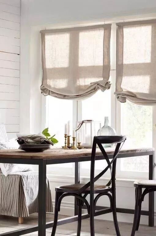 这种款式的窗帘一般适用于书房、厨房和洗涤房的窗户装饰,非常省空间,同时也能为室内装饰效果加分。