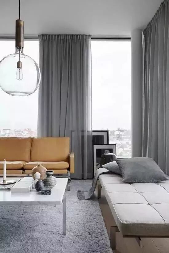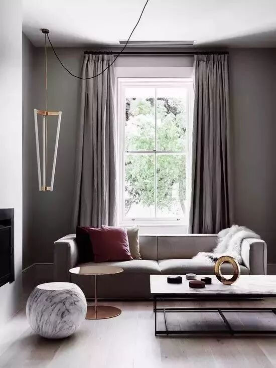 如果你想让整个家呈现出一种低调的高级感,最适合的窗帘颜色当然是灰色系。