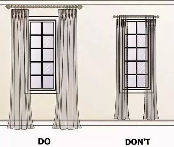 窗帘的褶皱也不能一味求多,否则会破坏美感。轻薄柔软的窗帘可以适当增加褶皱量,控制在2倍左右,而质地较厚的面料,1.5倍褶皱就差不多了。