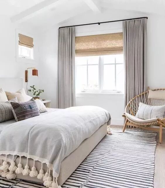年轻人的卧室则可以选择清新自然,或者充满高级感(如:高级灰)的窗帘品种。